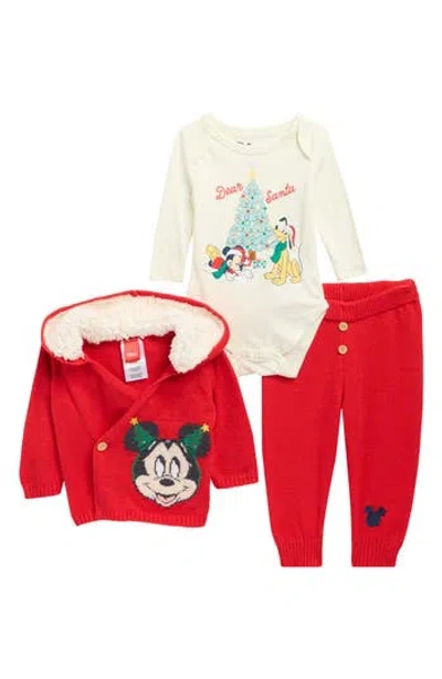 Babies' Mickey Hooded Sweater, Bodysuit & Pants In Red