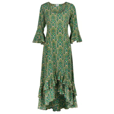 Women's Green / Blue Cotton Annabel Maxi Dress In Blue & Green Vine