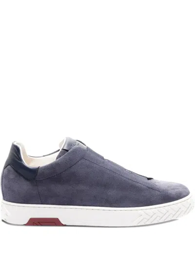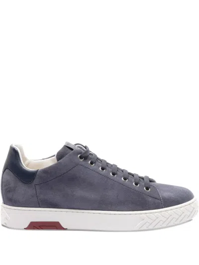 Testoni Man Sneakers Slate Blue Size 7 Calfskin, Textile Fibers