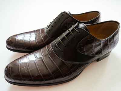 Pre-owned Testoni Brown Crocodile Alligator Leather Oxford Shoes Loafers 9 Us 42 Euro 8 Uk