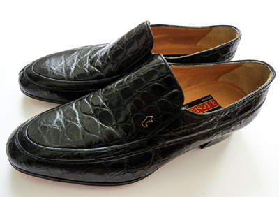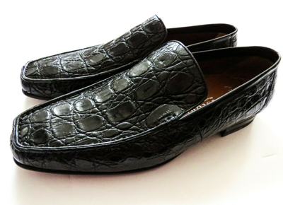 Pre-owned Testoni Black Crocodile Alligator Leather Shoes Loafers 8.5 Us 41.5 Euro 7.5 Uk