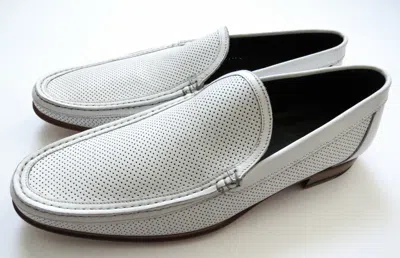 Pre-owned Testoni White Perforated Leather Loafers Shoes Size 11 Us 44 Euro 10 Uk In Sand Beige