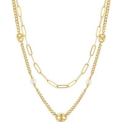 Hammered Disc & Coin Pearl Pendant Necklace In Multi