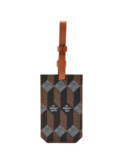 Geometric Print Leather Luggage Tag In Brown