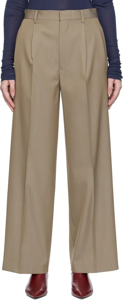 Beige Light Wool Max Gabardine Two-tuck Trousers In Green