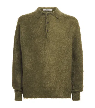 Super Kid Mohair-wool Brushed Polo Sweater In Green
