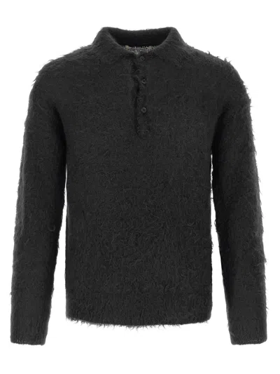 Mens Brushed Super Kid Mohair Knit Polo In Black