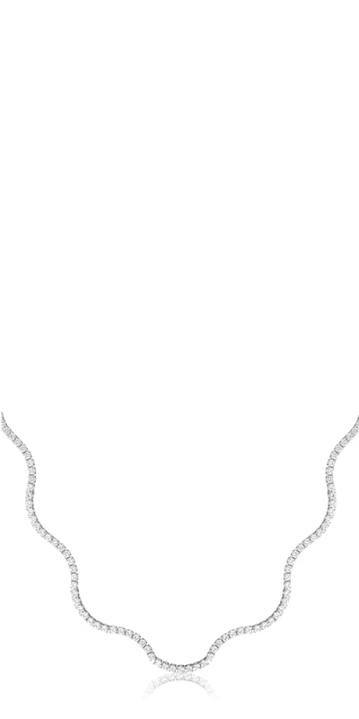 Lab Grown White Sapphire Wave Tennis Necklace