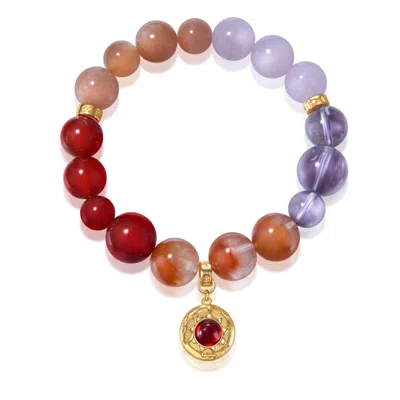Women's Five Elements Fire Gold Vermeil Garnet The Sun Firebird Pendant Crystal Bracelet In Multi
