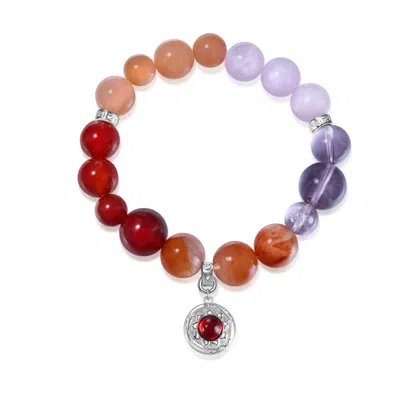 Women's Five Elements Fire/ Sterling Silver Garnet The Sun Firebird Pendant Crystal Bracelet In Multi