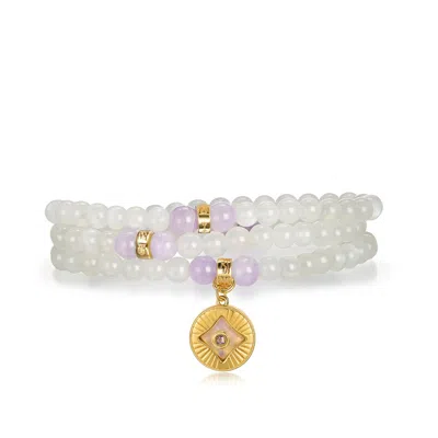 Women's Gold / Purple Three Charms Solar Meridian The Sun Crystle Beaded Necklace Lepidolite In Multi