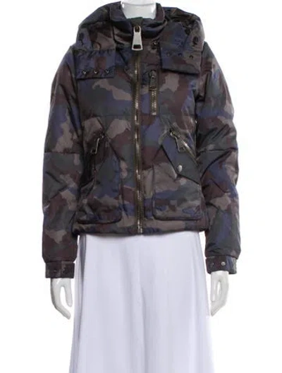 Pre-owned Camouflage Print Down Jacket In Gray