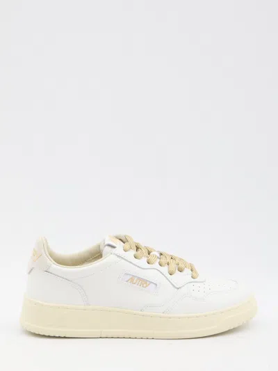 Medalist Low Two-tone Sneakers In White And Metallic Platinum Leather In Neutral