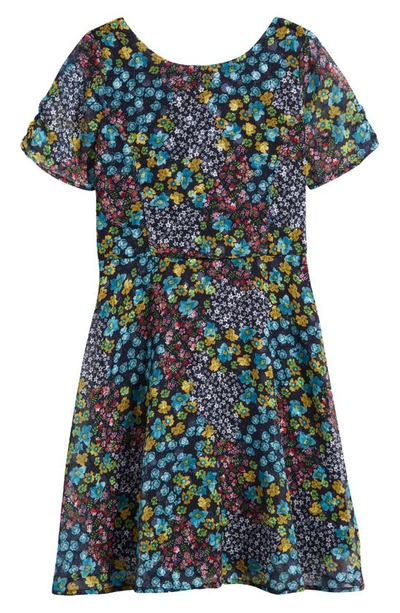 Kids' Floral Tie Back Skater Dress In Black Multi