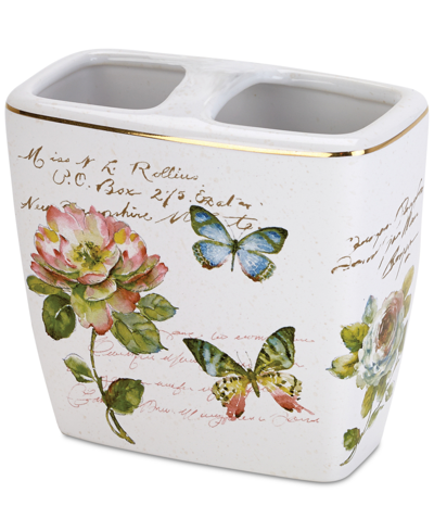 Butterfly Garden Ceramic Toothbrush Holder In White