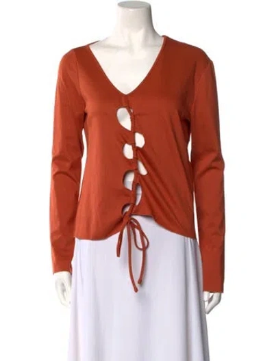 Pre-owned V-neck Long Sleeve Blouse W/ Tags In Orange