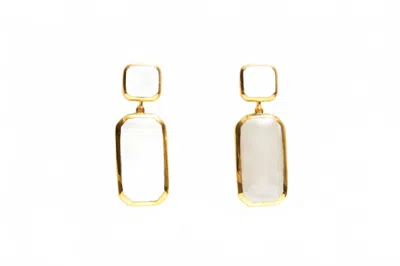 Women's Geometric Double Drop Flat Earrings In White