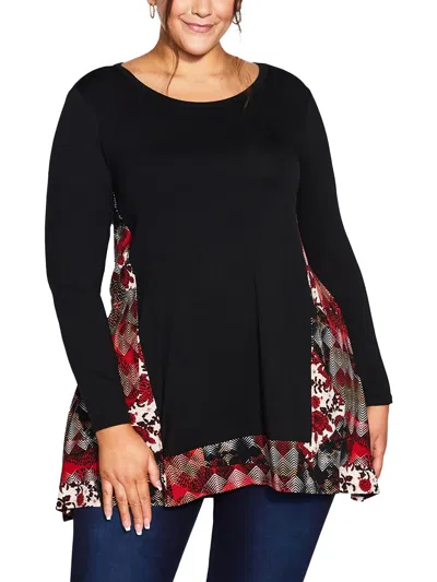 Plus Womens Textured Split Hem Tunic Top In Black
