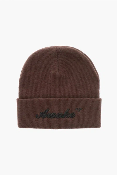 Embroidered Logo Beanie Hat In Brown