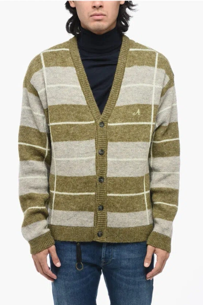Two-tone Striped V-neck Cardigan In Green
