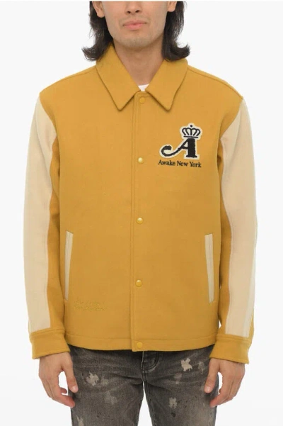 Wool And Nylon Two Tone Bomber In Yellow