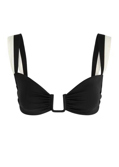 Cannes Biodegradable Stretch-polyamide Bikini Top In Black/ivory