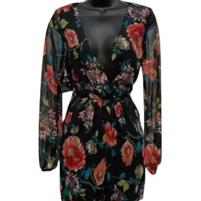 Belted Romper In Black Multi