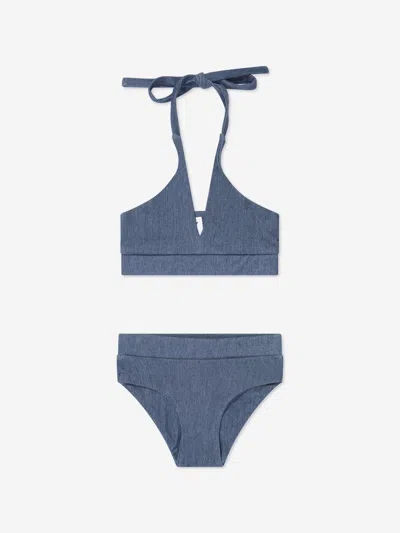 Kids' Girls Denim Look Halterneck Bikini In Blue