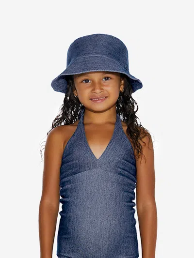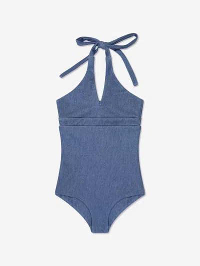 Kids' Girls Denim Look Halterneck Swimsuit In Blue