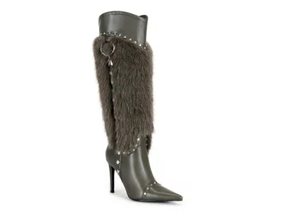 Langdon Faux Fur Heeled Knee Boots In Brown