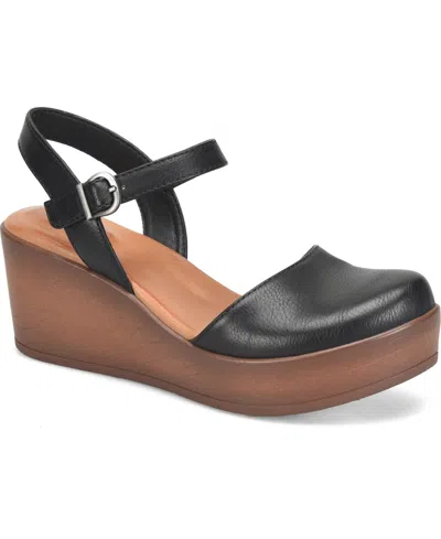 Gia Womens Leather Ankle Strap Wedge Sandals In Black
