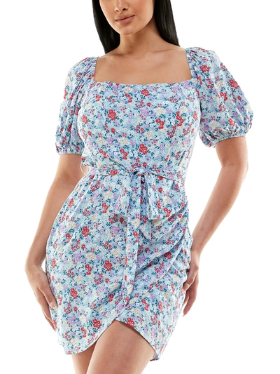 Juniors Womens Floral Print Mini Bodycon Dress In Multi