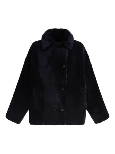 Brown Shearling Coat With Classic Collar And Long Sleeves