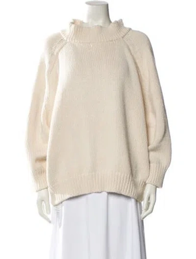 Pre-owned Wool Mock Neck Sweater In White