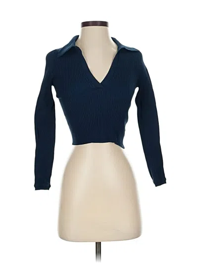 Pre-owned Long Sleeve Top Blue Keyhole Neckline Tops