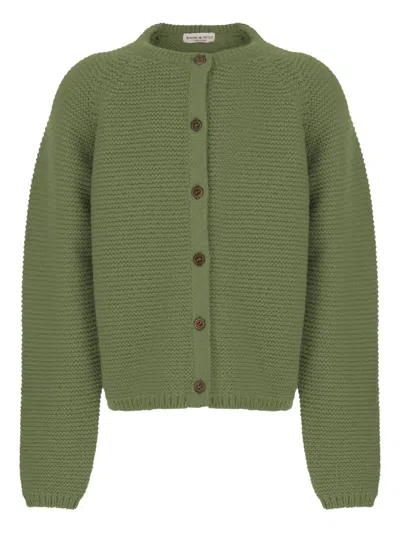 Kids' Crew-neck Button Cardigan In Green