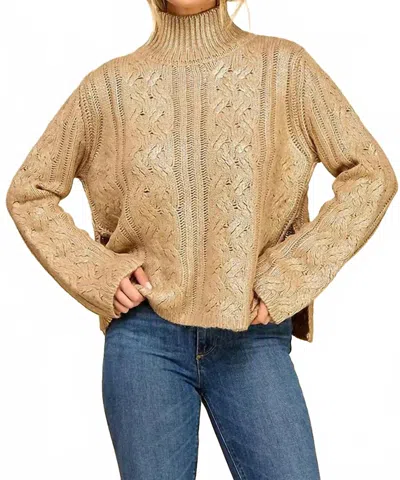 Foiled Mock Neck Sweater Top In Classic Taupe In Brown