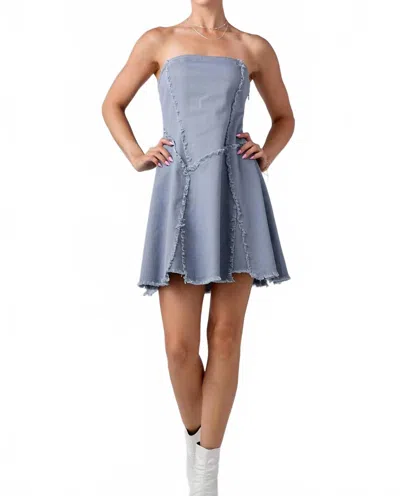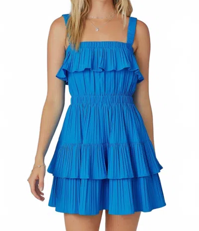 Pleated Tiered Elastic Detail Mini Dress In Blue