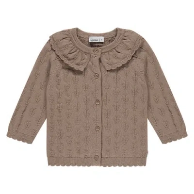 Heart Pointelle Collar Cardigan In Brown