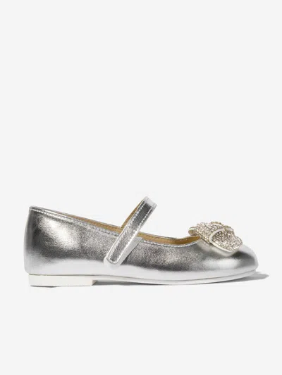 Kids' Girls Leather Crystal Bow Ballerinas In Metallic