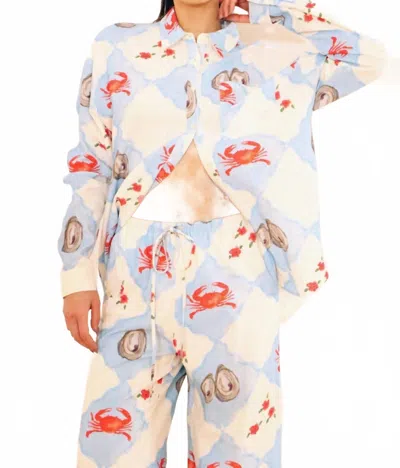 Coastal Charm Drawstring Pants In Blue Multi