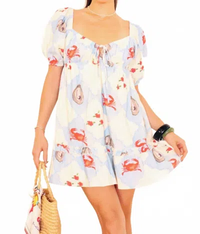 Coastal Charm Mini Dress In Blue Multi