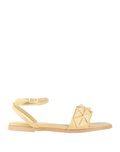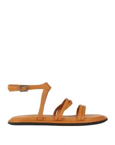 Woman Sandals Marigold Size 7 Leather, Textile Fibers In Yellow