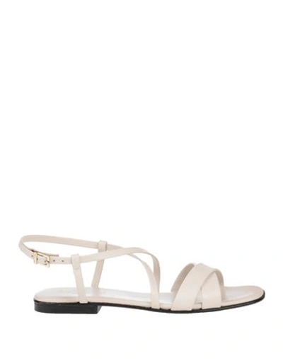 Woman Sandals Sand Size 8 Leather, Textile Fibers In Beige
