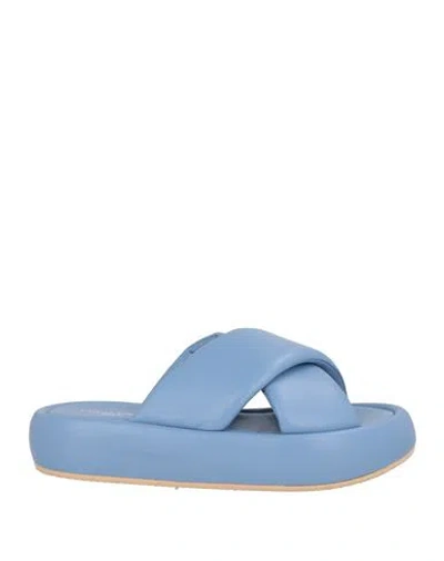 Woman Sandals Azure Size 7.5 Textile Fibers In Blue