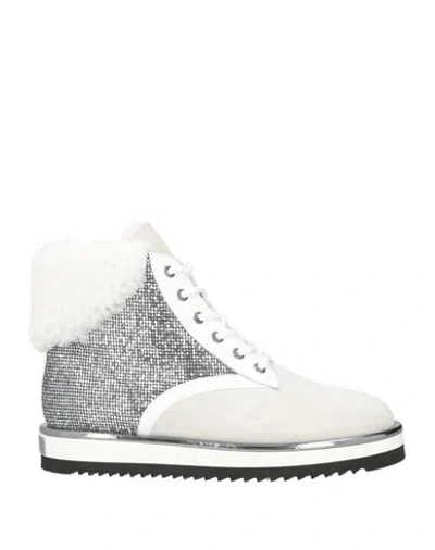 Woman Sneakers Silver Size 8 Soft Leather, Textile Fibers In White