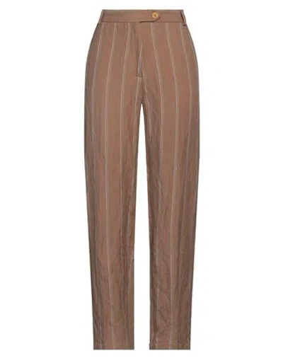 Woman Pants Camel Size 10 Cotton, Linen In Beige