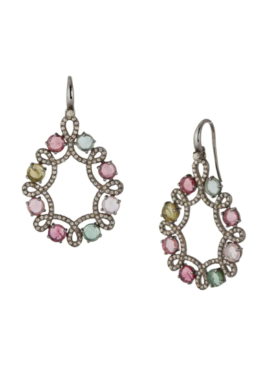 Women's Sterling Silver, Multi-color Tourmaline & Diamond Drop Earrings
