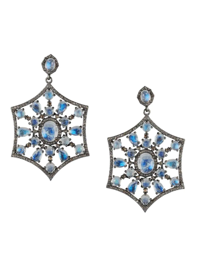 Women's Sterling Silver, Rainbow Moonstone & Diamond Drop Earrings