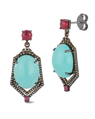 Silver 1.85 Ct. Tw. Diamond & Gemstone Drop Statement Earrings In Multi